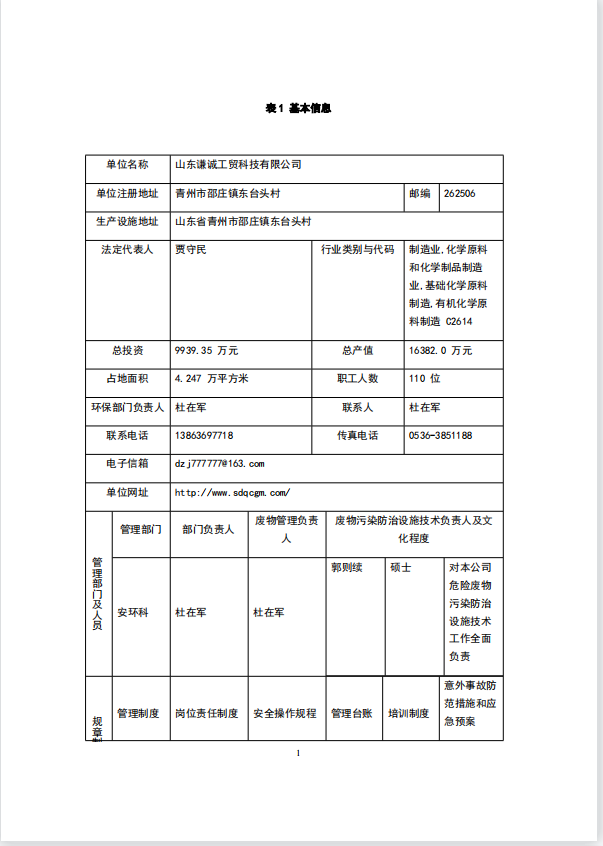 2021年山东谦诚工贸科技有限危险废物管理计划